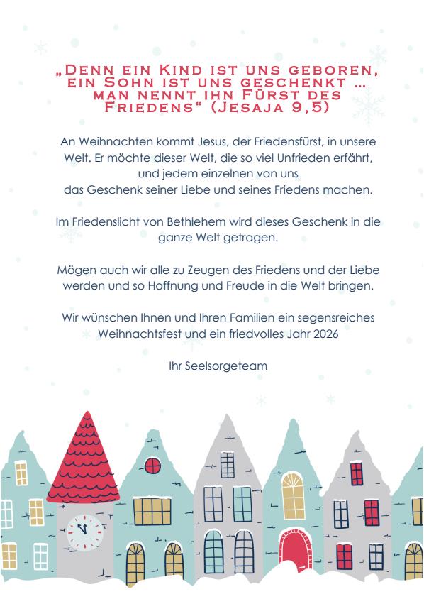Weihnachtsgruß 2025 des Seelsorgeteams der Pfarrei Seliger Johannes Prassek