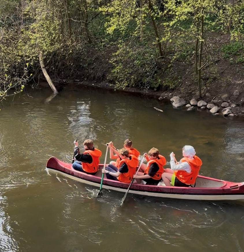 Einige Wochen der Vorbereitung liegen schon hinter uns und wir haben uns schon recht gut kennengelernt, aber die Firmreise in das Nils-Stensen-Haus in Wentorf hat uns noch enger miteinander verbunden. Der Heilige Geist war nicht nur Thema, sondern auch dabei, als wir über die Dreifaltigkeit sprachen, die Firmfeier und unsere Statio dafür vorbereitet haben, bei der Abendandacht und der Wortgottesfeier zusammen mit einer anderen Firmgruppe, bei den leckeren Mahlzeiten, beim Basketballspiel, beim Escape-Spiel zum Heiligen Geist, beim Eisessen und beim Kanufahren auf der Bille, auch wenn bei letzterem einige mehr oder weniger freiwillig eine „Tauferinnerung“ im Bille-Wasser gefeiert haben. Es war eine super Stimmung und die Gruppe ist noch enger zusammengewachsen. Nun sind es nur noch wenige Wochen bis zur Firmung am 7. Juni, auf die wir uns alle sehr freuen!